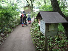 10、かくし水を通過 11時45分 下山時に「かくし水」で水を汲んで行く人が多い。