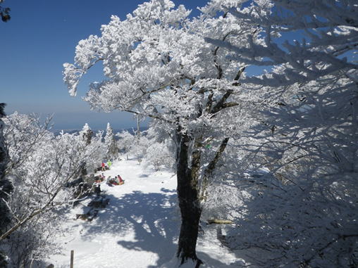 英彦山 中岳山頂広場 大きなブナも樹氷で真っ白 13時37分