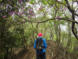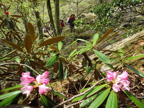 登山道に咲くシャクナゲ 10時44分 ご婦人の登山者から歓声が上がる