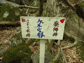 北岳のシオジ林 H師匠から、この辺りのシオジ林のレクチャーを受けながら歩いていると看板が現れた。 県内でもっともすぐれたシオジ林です。シオジは岩の累積した湿気の多い谷間を好みます。樹高25メートル、直径1メートルにも達する木があります。林床に円形に葉を広げたミヤマクマワラビを伴っているのが特徴です。(説明看板より抜粋) |