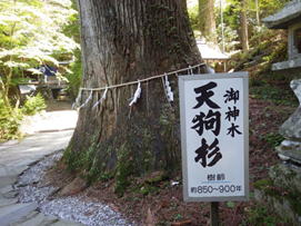 高住神社御神木「天狗杉」 13時39分 不覚にも社務所で少し話し込んでしまった。H師匠とヤジさんはもう駐車場へと向かっていたので慌てて後を追った。 石段途中から右へ |
