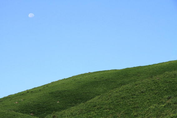 広谷湿原を後にして中峠に戻る途中・・・台地の上に月を見つけた。 7時53分