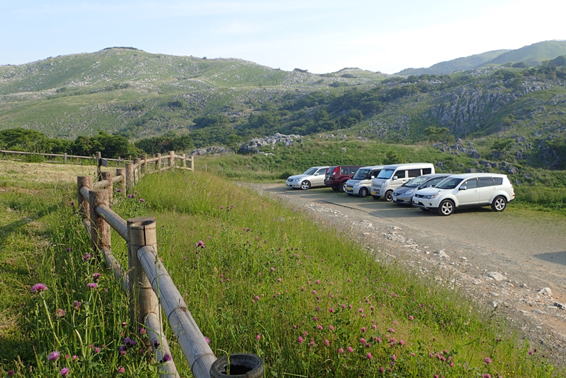 平尾台・茶ヶ床園地駐車場 早朝7時20分に到着 清々しい朝だ!