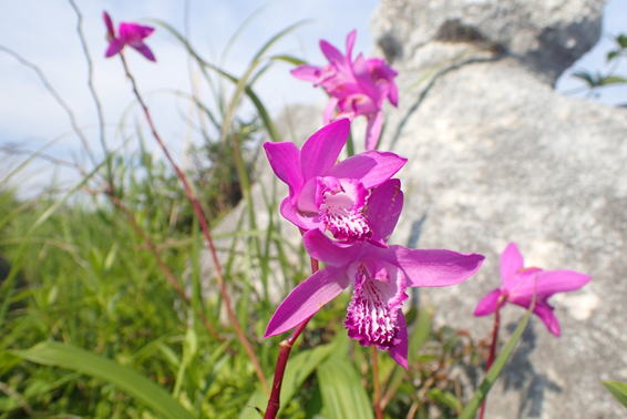 平尾台ではシランの季節がやってきた。以前見たドリーネの斜面に咲く姿が忘れられない。 |