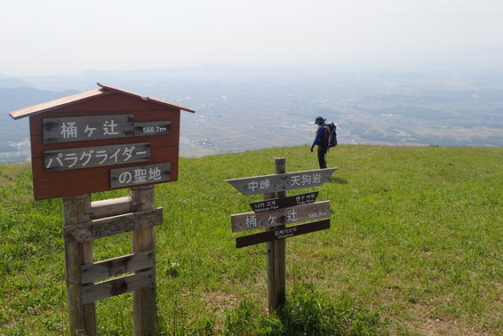 桶ヶ辻の山頂で暫くパラグライダー見学を楽しんで先へと進んだ |