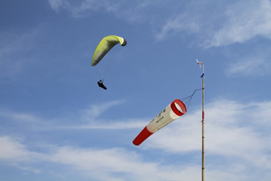 | 桶ヶ辻の稜線上を飛ぶパラグライダー 10時17分 夢とロマン |