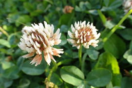 茶ヶ床園地では、ムラサキツメクサとシロツメクサが競って咲いていた。 |