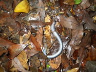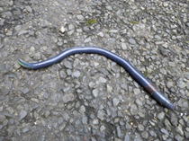 車道に出て右へ進むと頂上へ 10時56分 足下にまたヤマミミズが・・・。気色わるーい。 ギョッ! |