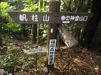 7、帆柱山山頂 10時03分 488m 木立の中の山頂。ベンチに腰を下して休憩。 見晴らしは一方向しか望めずパッとしない。 ![]() |