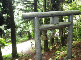 アンテナ塔の裏側へ 11時21分 鷹見神社の奥宮に参拝して先へ進んだ。 安全祈願 |