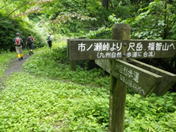 1、尾倉登山口駐車場出発 8時09分 山頂には雲がかかっているが、お天気は回復傾向なので元気よく出発。 さあ行くぞー |