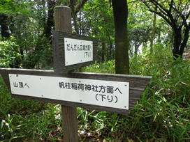 再び花尾の鞍 9時28分 これよりふれあいの森コースで帆柱山を目指す。 道は広くて歩き易い。 ![]() |