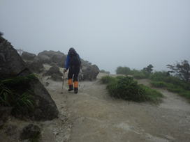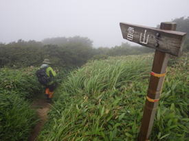 山頂は雲の中 8時16分 もうすぐ山頂なのだが、雲に覆われて視界が利かない。残念だが仕方ない。 カキラン |