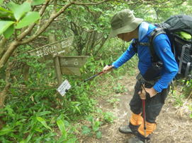 4、キトク橋・アンの滝への分岐 8時46分 アンの滝にも一度行ってみたいものだ! 雷山へ |