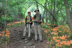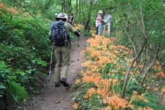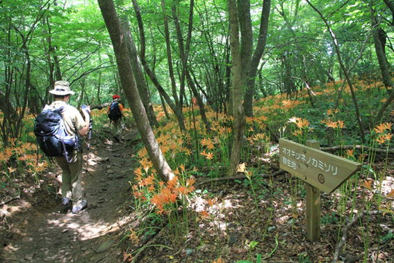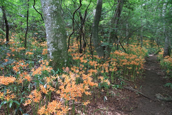 登山道沿いに咲き誇るオオキツネノカミソリ