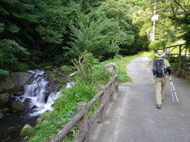 1、野河内 7時01分 左に川を見ながら、滝やま荘の前の道を進んで行く。すぐに分岐に辿り着く。 |