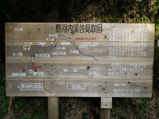 野河内渓谷見取図 左は野河内渓谷 右は野河内林道を経て 井原山へ
