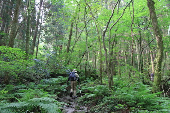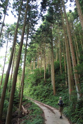 杉林の中を歩く 7時19分 |