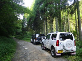 見覚えのある「ジムニー」 8時01分 林道を歩いて行くと、「ん?」どこかで見たことのある車が・・・。ひょっとしてNさん? |