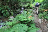 アンの滝分岐 8時35分 清涼感ある沢沿いを上って行く。 |