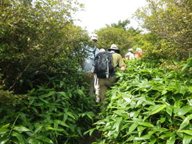 笹をかき分けて進む 9時36分 足下は笹が覆い茂っている。 |