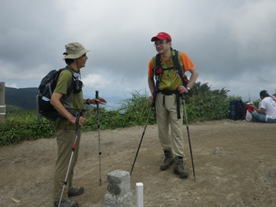 Nさんと情報交換 10時33分 単独で来ていたNさんと一緒に下山することにした。赤い帽子が遠くからでも確認できました。 |