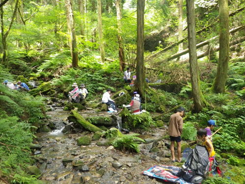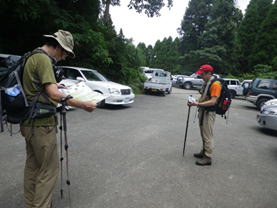 駐車場は相変わらず満車状態 12時09分 Nさんとはこの先の林道入り口でお別れです。 |