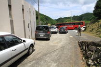 道路沿いのトイレのある広場 13時12分 下山完了。広場は車で満杯になっていた。 |