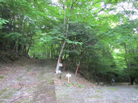 林道に出る 12時04分 林道を斜めに渡り、すぐに登山道に入る。 |