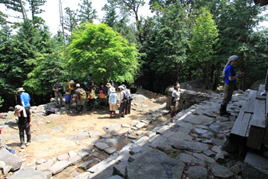 船石 8時03分 この石積はいったい何?登山口から1K地点。 |