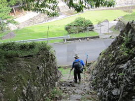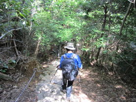 13、鬼の石段・鬼の鐙(あぶみ) 14時03分 かなり長くて急な石段(850段)が続く。 |