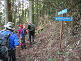 大竿峠を出発 11時06分 徐々に上りとなり、林の中を歩いて行く。 |