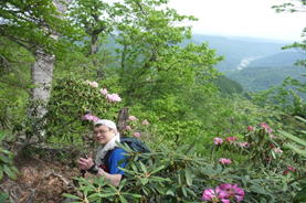4、笈吊(おいつり)峠 9時07分 シャクナゲがチラホラ咲いている。 |