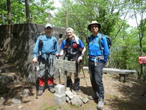 6、犬ヶ岳山頂 10時26分 1131m 出発して約3時間。三人で記念撮影。 |