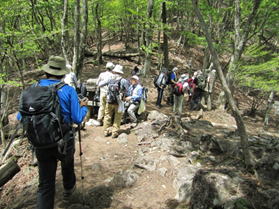 3、ウグイス谷 8時15分 急登を上り、かなり汗をかいてきた。 |