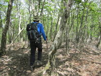 犬ヶ岳を出発 10時39分 しばらく林の中を歩いて下る。 |