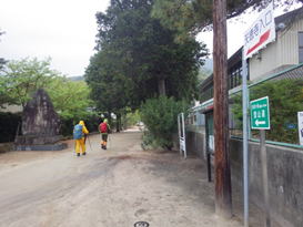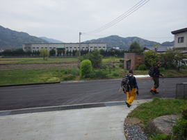右田小学校 14時14分 庭の綺麗な民家を見ながら、ようやく右田小学校に辿り着いた。校舎の後ろには、今登ってきた右田ヶ岳が堂々と聳えていた。 駐車場へ |