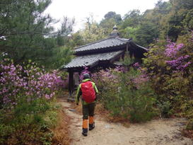今年最初の県外登山。目指すは山口県防府市の右田ヶ岳である。この右田ヶ岳はこれまで高速道路や新幹線の車窓から何度も眺めていたが、見るからに岩がゴツゴツでとても印象に残る山だった。実際登るのは初めてである。今朝は雨の為山行きが危ぶまれたが、T師匠の大号令でベテランYさんと共に三人でスタート! ミツバツツジもまだまだ咲いていて充実した山行きとなった。 |