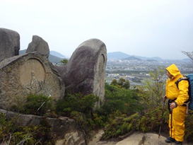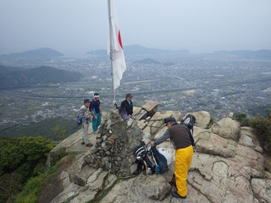 右田ヶ岳山頂より防府市内を望む。雨も上がり、ゆっくりと腰を下ろしてランチタイム。