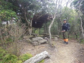葉椰詩(はやし?)の山小屋 12時43分 今にも崩れそうな手作りの山小屋に出会う。この山域の常連さんが作ったのだろうか?急な雨の際には都合が良さそうだが・・。 ネームプレート |