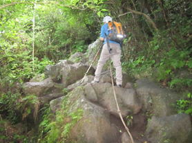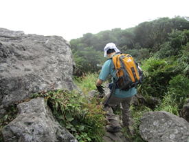 ロープで岩場を上る 8時39分 |