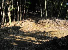 小さな石仏 8時33分 ふと足元をみると小さな石仏を見つけた。 登山者を見守ってくれているのであろうか? この道は平坦でとても歩きやすい。 落ち葉がたくさん敷き詰められた気持のよい場所である。落ち葉を踏む音がずっと続く。 |