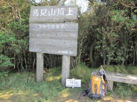2、馬見山山頂 9時08分 977m 小石原民芸村の登山口からここまで2時間13分だった。早朝おにぎりを1個しか食べていなく、お腹が空いていたので、山頂で何か食べようと思っていたが、大きな熊蜂が低空で大きな羽音をたててホバーリングしていた。 熊蜂の性格は温厚なことはわかっていたが、あの羽音を聞くと心が落着かず、山頂での写真を撮影してからすぐに先へと進んだ。 |