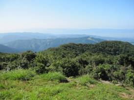 少しだけ見晴らしのよい場所に 8時27分 ここが838mポイントと呼ばれる所だろうか? 今までずっと樹林の中を歩いてきたが、初めて展望の開けた場所に出た。風が涼しい。 右手に見えるのは屏山だろうか?初めて見るのでよく分からなかった。またすぐに樹林帯の中へ入る。 |
