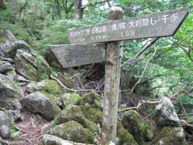 大将隠しと奥ノ院の分岐 11時37分 右に進み、赤テープに沿い大将隠しへ向かう。
