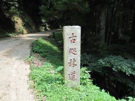 8、古処林道入り口 13時30分 結局古処林道を下って行き、その先の大きな舗装道路に出てしまった。その後「秋月街道」の表示を見ながら車道を更に下って行く。