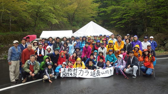 山口登山口の横で集合写真 子供たちも加わって活気が出る!