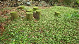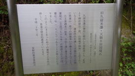 | 旧久留米藩・天領日田国境石 (福岡県指定文化財 史跡) 指定年月日 平成9年7月25日 久留米藩が幕府に提出した国絵図にも「此所より御前嶽迄ノ間、山国境不相知」と記されているように、藩政時代を通して天領日田との間に熊渡山一帯での国境争いが絶えませんでした。古文書調査の結果、方位と通し番号を付した藩境石(全部で78本)が埋設されたのは、慶応3年(1867)であることが明らかになりました。このようにまとまった形での藩境石の存在は珍しく、貴重な歴史的遺産といえます。 平成20年3月 星野村教育委員会 (説明看板より) |