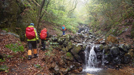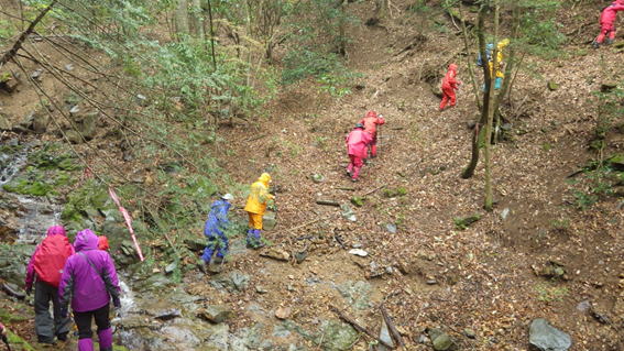 沢を渡渉 9時35分 沢に下りまた上る |