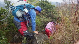 | だだ、急な斜面をトラバースする場面も出てきたりするので、足下には十分注意する必要がある。ザレ場などでは小股でゆっくり、ソフトな歩行をすることが大切だと思う。 |